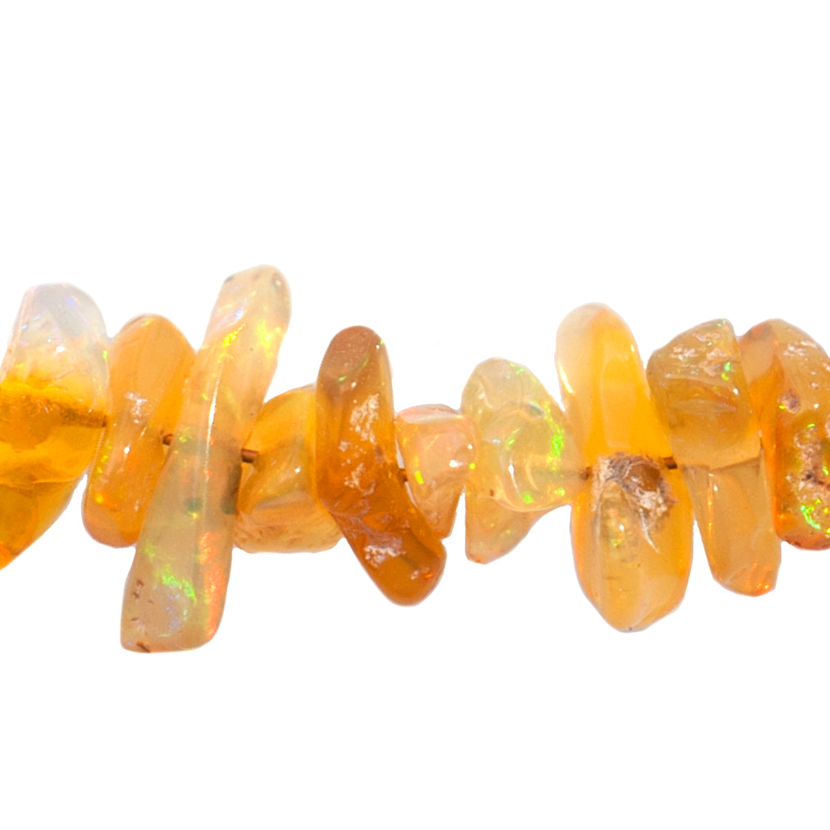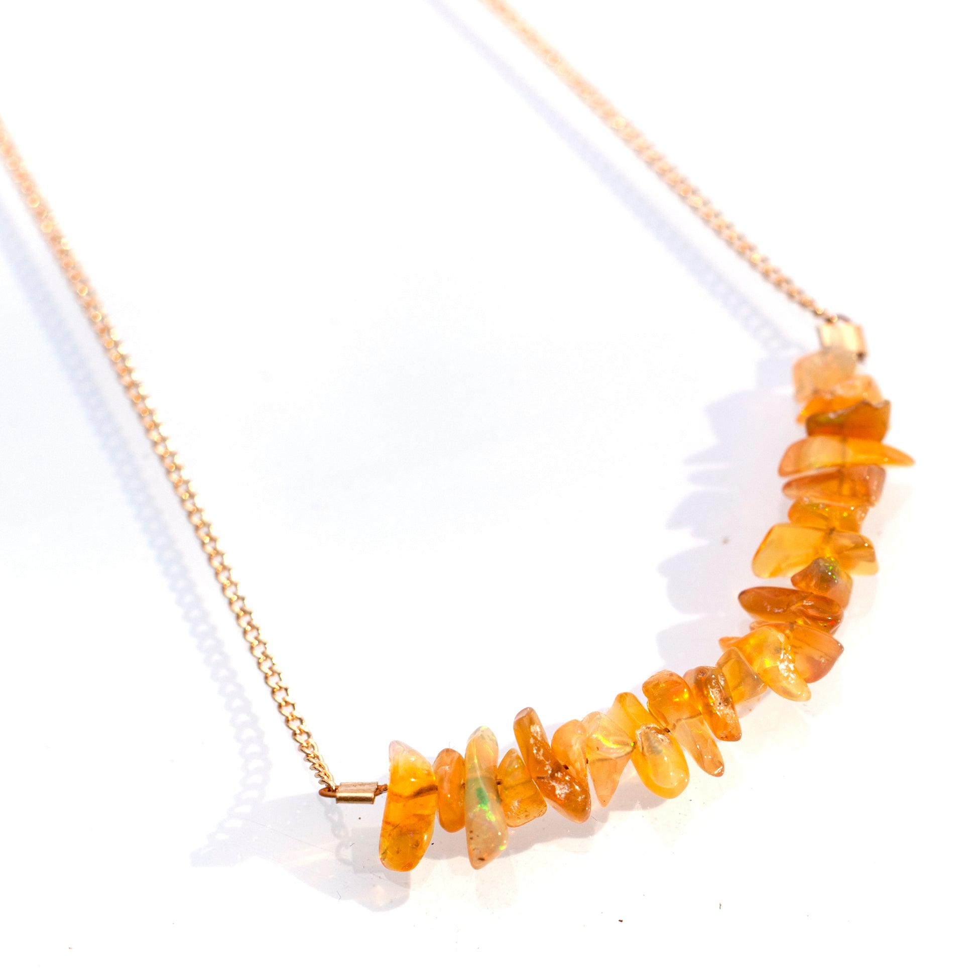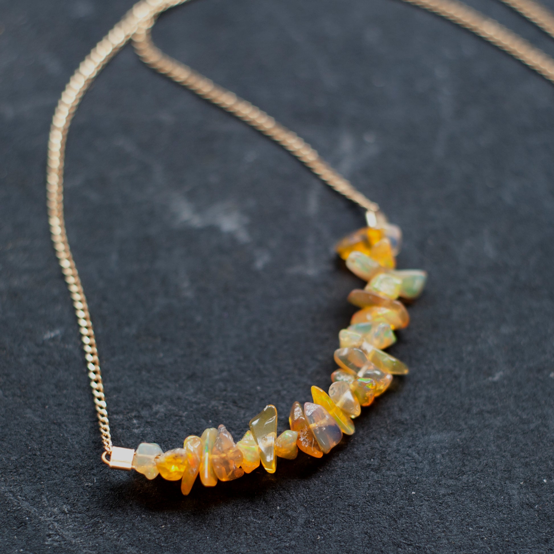 An elegant strand of glowing, golden Ethiopian Opal nuggets that exhibit gorgeous "fire" within. 14k gold-fill chain. Approximately 17" in length.